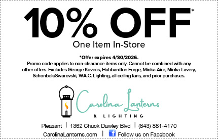 *Offer cannot be combined with any other sale or discount. Excludes copper lanterns, clearance items, previous orders, and Minka Aire, Big Ass Fans, Visual Comfort Modern and Ro Sham Beaux products. Other exclusions may apply; see showroom for details.